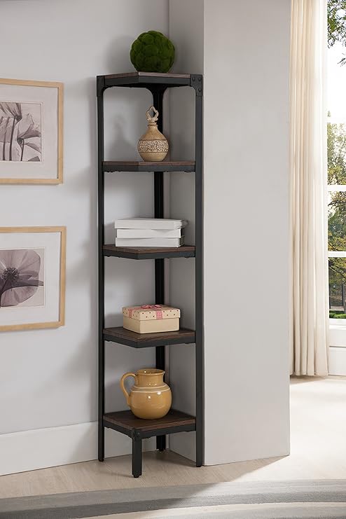 Amazon Com Kings Brand Furniture 5 Tier Antique Finish Corner Bookshelf Bookcase Furniture Decor