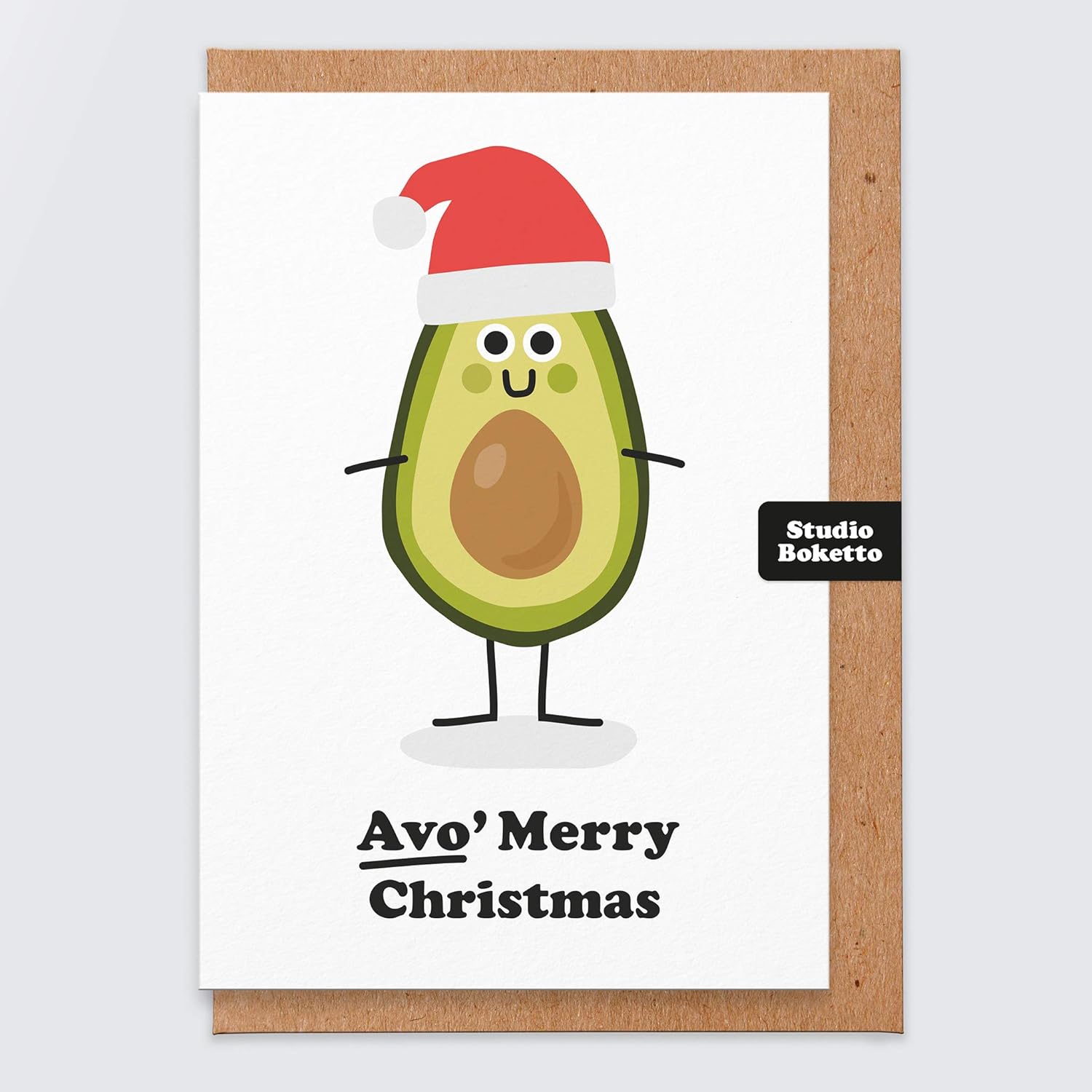 Avocado Christmas Card - Funny Christmas Card - AVO Merry Christmas - Avocado Card - Handmade - Pun - Vegan - Vegetarian - Pun Card Joke Card - for Him - for